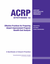 TRB's Airport Cooperative Research Program (ACRP) Synthesis 13: Effective Practices for Preparing Airport Improvement Program Benefit-Cost Analysis explores assessment techniques that can be used by airports in performing benefit-cost analysis for hard-to-quantify benefits from projects needing more than $5 million in Airport Improvement Program discretionary funding.