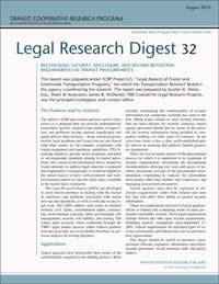 TRB‘s Transit Cooperative Research Program (TCRP) Legal Research Digest 32: Reconciling Security, Disclosure, and Record-Retention Requirements in Transit Procurements highlights the legal requirements that are relevant to the transit procurement process of balancing the competing needs of open government and public security. The report explores federal and state requirements concerning record retention and disclosure, as well as practices transit agencies have adopted to meet their responsibilities in balancing these competing public policy interests.