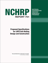 TRB’s National Cooperative Highway Research Program (NCHRP) Report 701: Proposed Specifications for LRFD Soil-Nailing Design and Construction contains proposed specifications for the design and construction of soil-nailed retaining structures.