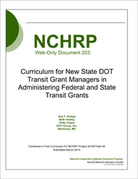TRB’s National Cooperative Highway Research Program (NCHRP) Web-Only Document 203: Curriculum for New State DOT Transit Grant Managers in Administering Federal and State Transit Grants establishes a curriculum to provide state transit directors with a comprehensive resource to train new staff in Federal Transit Administration program management and subrecipient oversight.