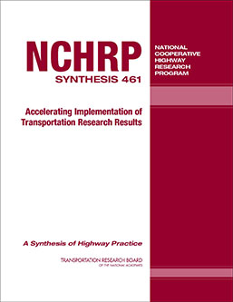 TRB’s National Cooperative Highway Research Program (NCHRP) Synthesis 461: Accelerating Implementation of Transportation Research Results examines implementation practices used by public-sector nontransportation agencies, nonprofits, and academia to accelerate practical application of research results. The emphasis is on practices that might be useful for transportation agencies to create more responsive research programs.