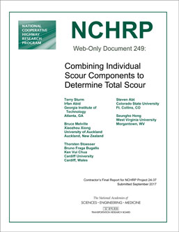 TRB's National Cooperative Highway Research Program (NCHRP) Web-Only Document 249: Combining Individual Scour Components to Determine Total Scour explores the relationships among individual scour components observed in the same flow event at a bridge. The report provides insight into ways to combine scour components to produce realistic estimates of total scour depth for safe and economical design of bridge foundations. The scour components of interest are lateral contraction scour, abutment scour, vertical contraction or pressure scour, and local pier scour.