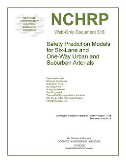 The Highway Safety Manual (HSM) provides a predictive method for two- and four-lane urban and suburban arterial facilities with both undivided and divided cross-sections. The manual does not cover arterials with six or more lanes or one-way streets. The TRB National Cooperative Highway Research Program's NCHRP Web-Only Document 318: Safety Prediction Models for Six-Lane and One-Way Urban and Suburban Arterials documents a safety prediction method for six-or-more-lane and one-way urban and suburban arteri...
