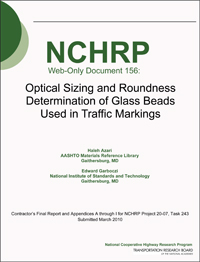 TRB’s National Cooperative Highway Research Program (NCHRP) Web-Only Document 156: Optical Sizing and Roundness Determination of Glass Beads Used in Traffic Markings is the final report on a project that examined the precision and bias of both optical and traditional mechanical methods for different glass bead types. The project also compared the precision and bias of various measurement methods, and explored development of a practice for the use of computerized optical methods and equipment to measure the size and roundness of glass beads used in traffic markings.