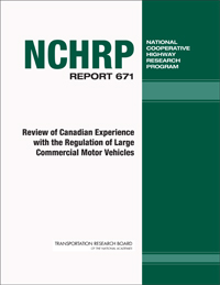 TRB’s National Cooperative Highway Research Program (NCHRP) Report 671: Review of Canadian Experience with the Regulation of Large Commercial Motor Vehicles examines the process used in Canada to harmonize heavy truck size and weight regulations across the country. The report provides insights on how lessons learned from the Canadian experience might be applied in the United States.