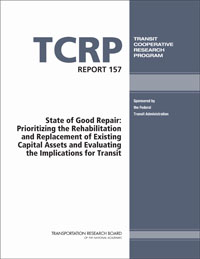 TRB’s Transit Cooperative Research Program (TCRP) Report 157: State of Good Repair: Prioritizing the Rehabilitation and Replacement of Existing Capital Assets and Evaluating the Implications for Transit presents a framework that builds upon a set of fundamental concepts and provides a basic set of steps for transit agencies to follow when evaluating and prioritizing capital asset rehabilitation and replacement investments.